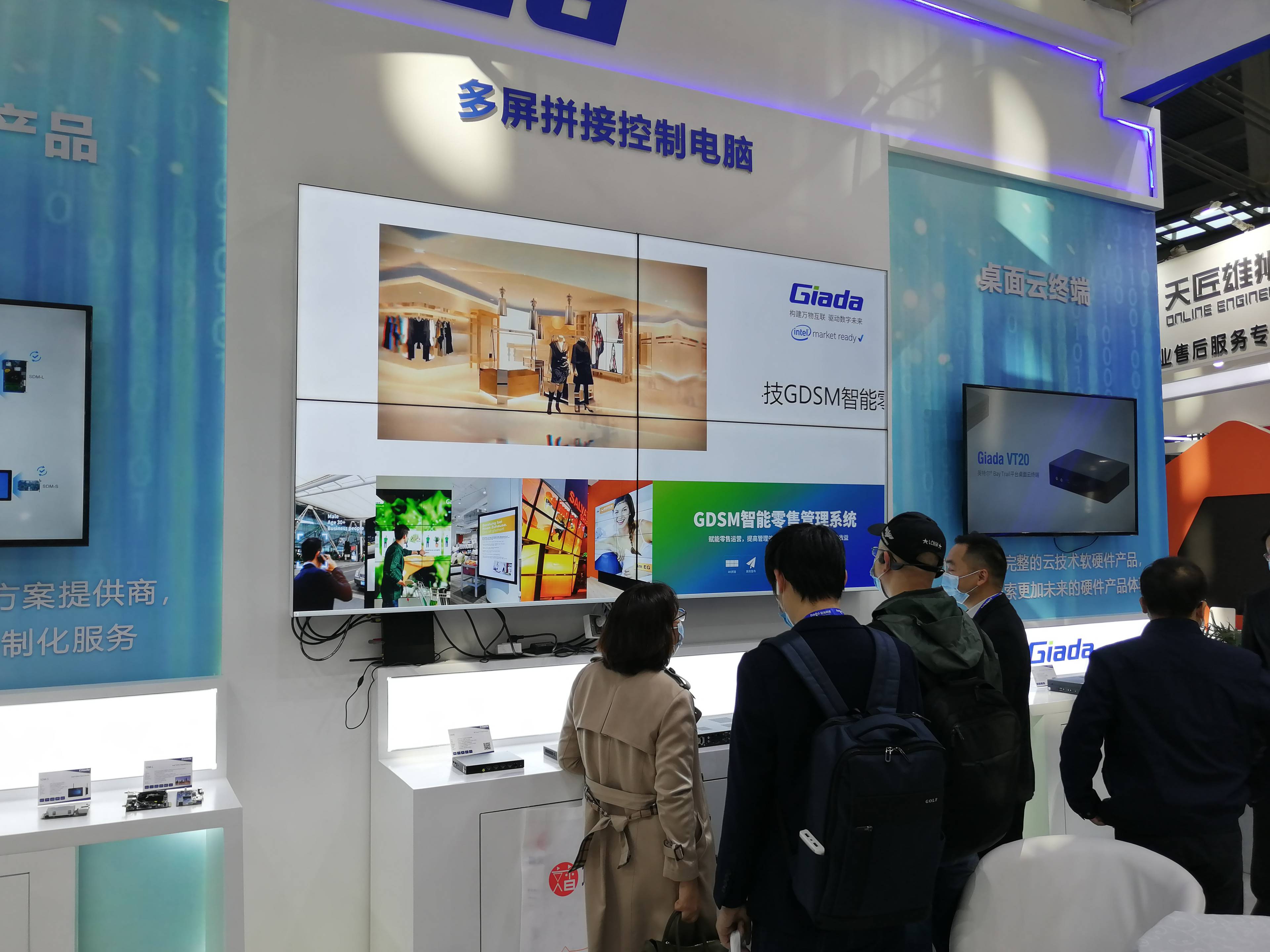 紧邻ARM架构商显产品集的精准推送展示区与零售门店模拟展区,共同组成了本届展会球王会·(体育)科技展位的一大精彩设计。场景展现了GDSM智能零售管理系统在零售门店场景下的展示效果,顶部的数字标牌由GDSM系统推送内容,模拟搭建了针对人流动线的广告精准推送形态。